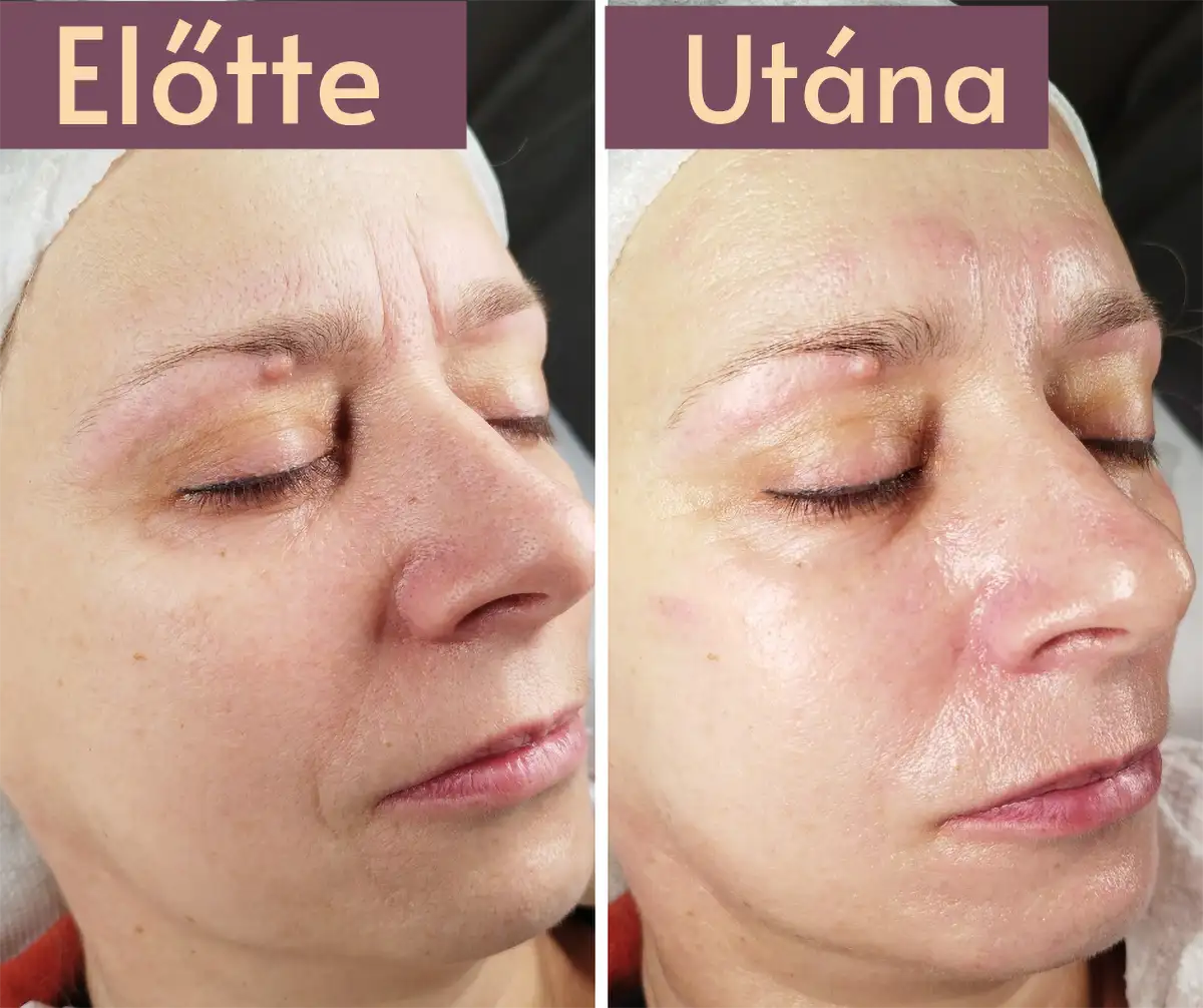 A kezelés után a bőr azonnal üdébb, feszesebb lesz, halványulnak a ráncok és javul a hidratáció.